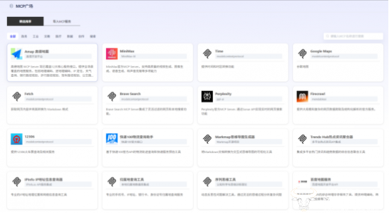 MCP服务及广场:平台原生支持MCP,打破工具壁垒,无需单独开发适配器即可连接高德地图、MiniMax等海量服务,构建 "模型 - 工具 - 场景" 的无缝协作网络。MCP广场内置100+MCP工具,实现优质资源一键调用。