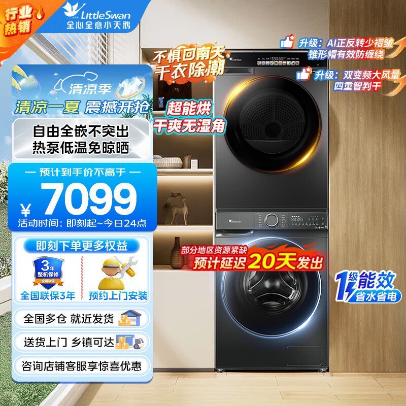 小天鹅洗烘套装原价7099现3099可入手