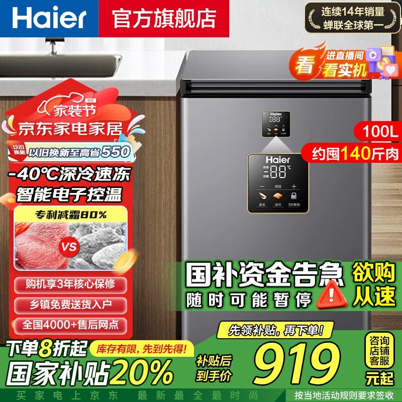 海尔冰柜100L,多种优惠后823元