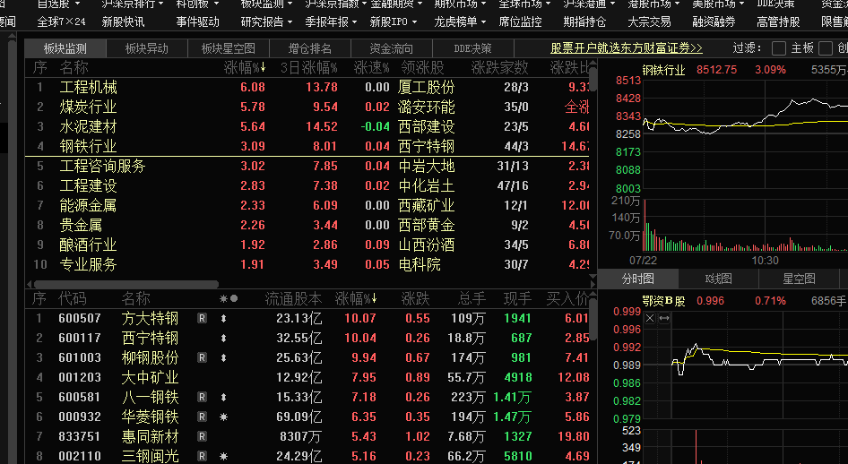 尤其明显的板块和个股是水电相关的基建水泥,钢铁,工程机械,电力和变电等会持续走强的感觉。