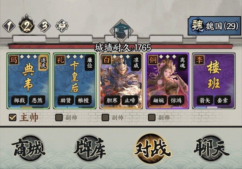 有个小技巧,由于卞皇后的防止叛变技能只能发动一次,我们可以在第二轮派出一名强力武将,利用金貂蝉触发将星效果,使夫人重新进场,从而成功俘获对方的第二个大哥。