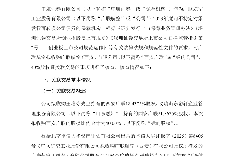 由于王增夺为广联航空控股股东、实际控制人,山东融轩为王增夺控制的企业,本次收购事项构成关联交易。交易完成后,西安广联成为广联航空全资子公司。
