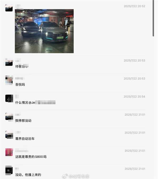 还有网友表示,“按理说自动泊车都很谨慎啊,传感器检测到有物体距离过近会提前刹停吧?至少YU7会这样。”