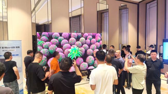 推介会现场展示的全球首款量产的135英寸P0.7 TFT基Micro-LED拼接屏,成为现场关注焦点。多位客户表示,“之前只在资料中了解过 TFT基技术,今天是第一次看到实物点亮,画质远超预期。”部分客户更在现场提出项目合作意向,计划将辰显光电的玻璃基模组应用于即将启动的项目中,已有设计评审项目进入接洽流程。亦有客户希望将样品引入项目现场实地测试,甚至当场表达采购意向。