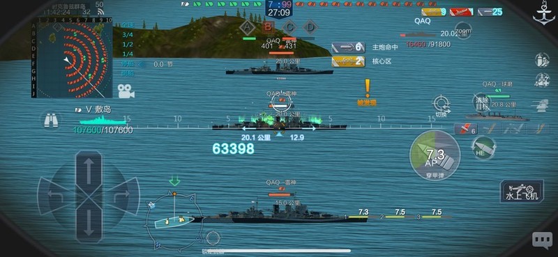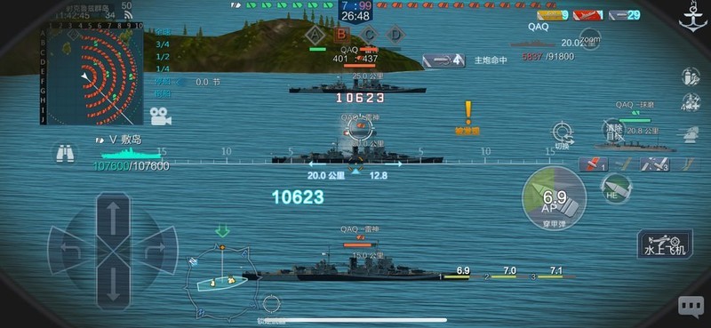 解决方法其实很简单,只需将准心略微上抬(见图8、图9)。这样做有两个优势:一是能绕过K2的主装甲,从防崩落板(图2中黄色部分)位置切入核心区域;二是可以直接攻击K2的水上核心。因此,那些觉得K2核心难以击中的玩家,其实只是考虑得过于复杂了。