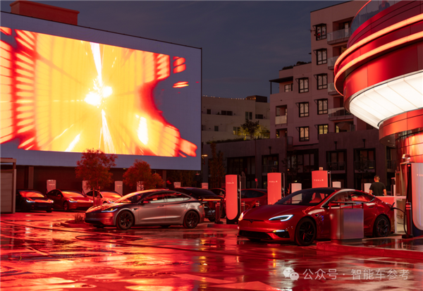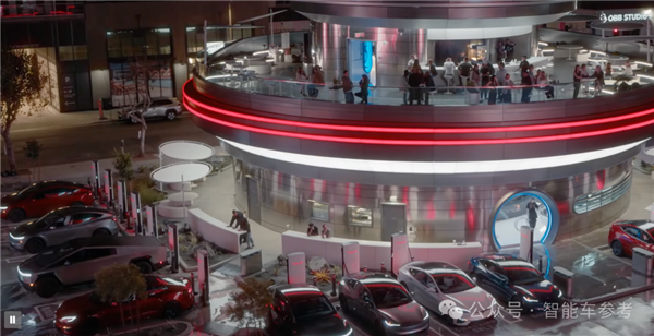 外面有两个长约13.7米的大荧幕,还有80个超充桩,你的车在店外补能,你在店里“补能”,以后充一次电,马哥能赚两份钱,赢麻了。