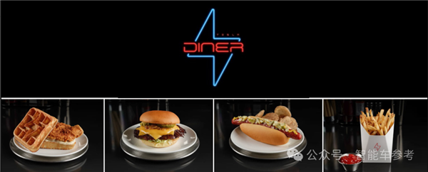 餐厅直接冠以特斯拉之名,就叫“Tesla Diner”,还为此专门设计了闪电状LOGO和一系列独家周边。