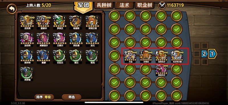 最后一排补骑兵,主要基于两点考虑:一是此位置已不太适合使用弓法,唯有尼克莱尚可驻守;二是起到半个前排的作用,既能防止敌方骑兵突入,又能略微牵制对方弓法单位。