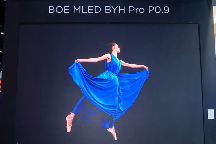 京东方在展会现场重点推出BYH Pro P0.9系列,凭借突破性的显示性能与绿色节能优势,为高端商业显示场景树立新标杆。BYH Pro P0.9系列凭借高达1500nits的亮度与10lux下12000:1的ACR环境光对比度,可呈现深邃纯粹的暗态黑场与卓越的显示效果。同时,搭配领先的低功耗技术,BYH Pro P0.9系列在600nits亮度下功耗可低至245W/m²,较常规COB产品节能20%,充分体现京东方在绿色低碳发展方面的应用成果。