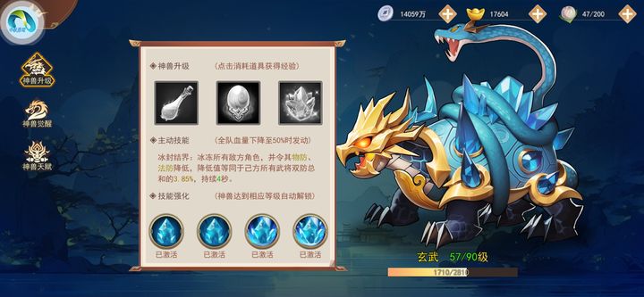 玩家最先获得的神兽是青龙,随后是白虎、朱雀,最后是玄武。战斗中推荐使用朱雀,其技能可阻止敌方获取怒气;玄武则适合用于副本挑战,其技能能对敌方全体造成冰冻并降低防御。后续关卡中的敌人多为高数值怪物,玄武的控制与减防能力将显得尤为重要。