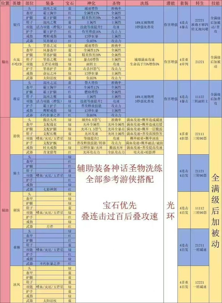 游侠与骑士作为稳固辅助,一个提升输出,一个增强命中与攻速。