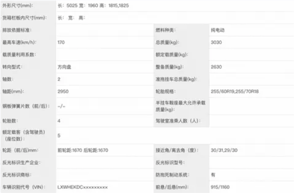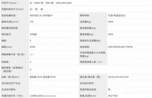 申报数据显示,福特烈马新能源(增程版)长宽高分别为 5025/1960/1825(1815/1840)毫米,轴距为 2950 毫米;