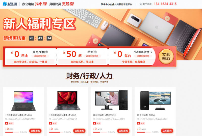 为帮助中小企业解决设备采购的难点与痛点,作为国家中小企业公共服务示范平台,小熊U租推出暑期特惠促销活动,通过新客首月免租、爆款电脑低价秒杀、全程IT技术支持等多项专属政策,助力企业“轻装上阵”,轻松办公。