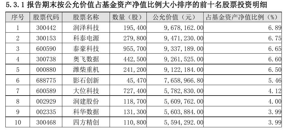 该基金的前十大重仓股中,润泽科技、奥飞数据、润建股份等多只标的属于国内算力链板块,为A股市场一季度的热门板块。进入二季度后,市场主线出现变化,上述板块股票表现低迷,润泽科技、科泰电源、奥飞数据在二季度跌超13%,润建股份下跌12.55%。