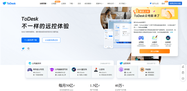 而且对比同类产品的另一项显著优势是为满足用户远程使用高性能电脑的需求,ToDesk远控中有云电脑的连接入口,开通后用户就可以利用显卡RTX4070/4090、CPU8核12线程/12核20线程、内存32GB/64GB、系统盘240GB SSD-1TB这样高规格的电脑来进行各样吃算力的操作了,千百款热门游戏及海量常见应用也都是预先部署在ToDesk云电脑中的,即开即用,便利度拉满。