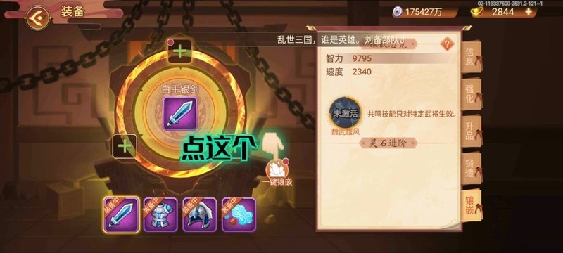 在拥有4个完整将灵前后,需依次镶嵌到装备的镶嵌槽中,分别是武器、头盔、胸甲和鞋子(书籍无法镶嵌)。