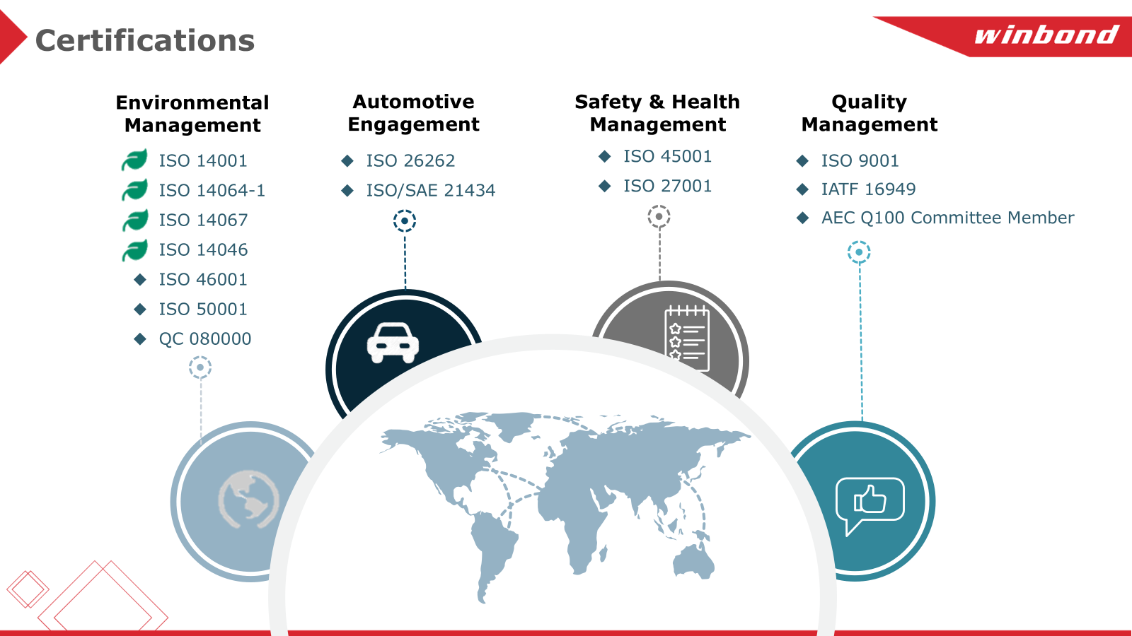华邦的环境认证由第三方验证认证支持,包括但不限于: