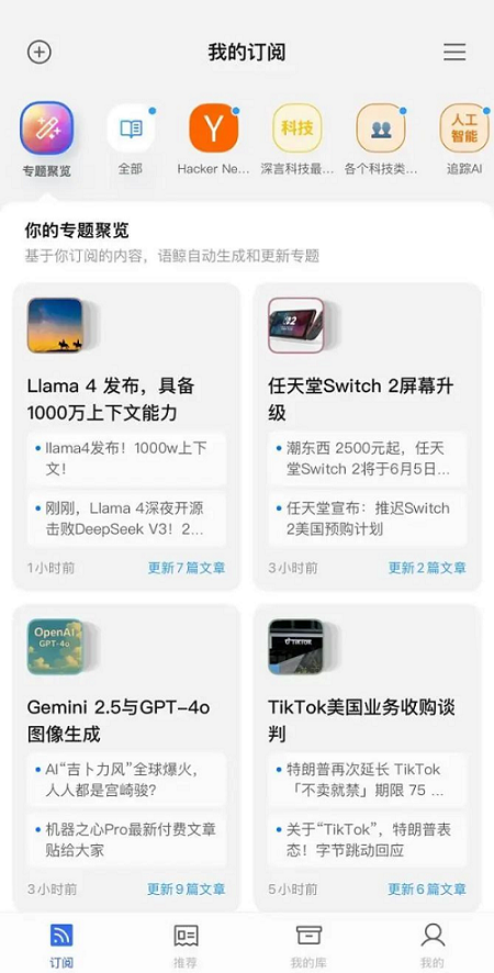 还能将日常关注的公众号内容自动整理成专题,让碎片化信息以话题为分类自动聚合。