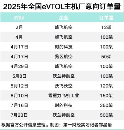 中国eVTOL今年获得的意向订单