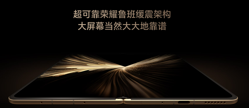 整体采用新一代天穹架构,并且是全球首款具备满级防水能力的折叠产品。同时还率先采用超薄柔性玻璃,以及超轻碳纤维屏幕支撑材料,并通过德国莱茵TÜV无感折痕认证,屏幕抗冲击及抗弯曲性能提至 130%。