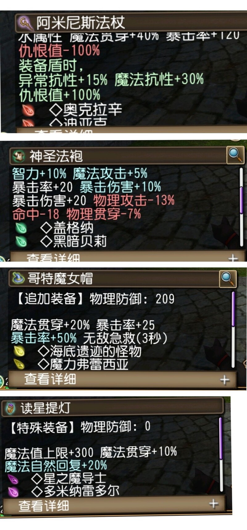 暴击初始25,加上阿米杖120、衣服20、魔女帽37、好战5,总暴击207。