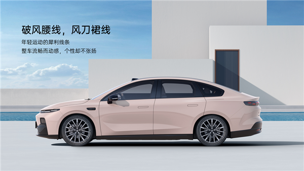 车辆侧面应用贯穿式腰线,搭配隐藏式门把手,外后视镜保护罩以及 B/C 柱采用黑色涂装。