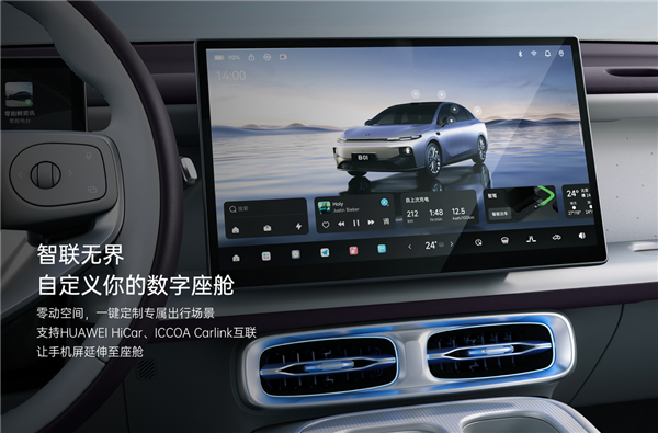 匹配 Leapmotor OS 4.0 PLUS 交互系统,提供 3D 灵动桌面、智慧卡片、自定义 Dock 栏、HiCar + Carlink 投屏生态等,并接入 AI 语音大模型,深度融合通义千问以及 DeepSeek 大模型。