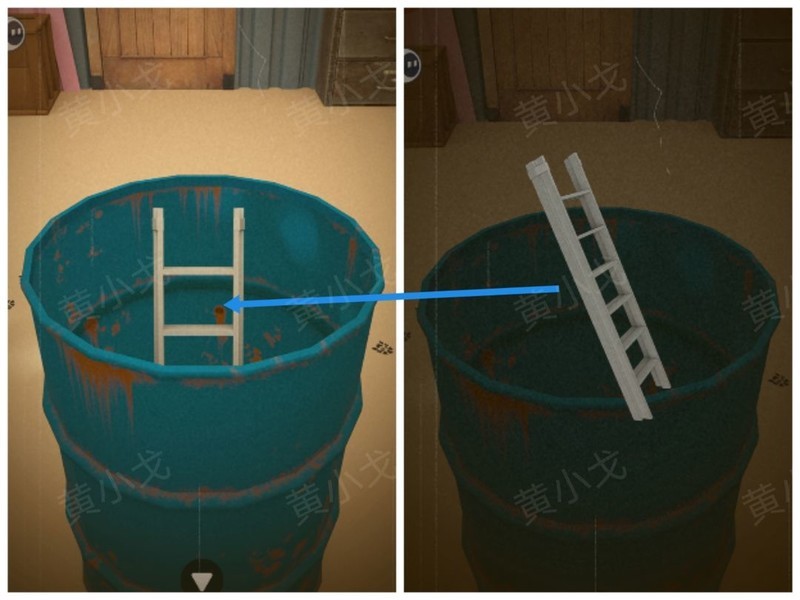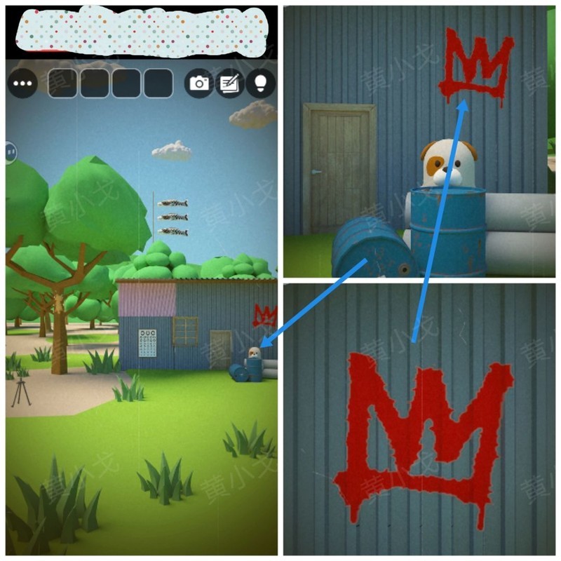 点击铁桶上的密码锁,根据提示结合各场景涂鸦调整密码。