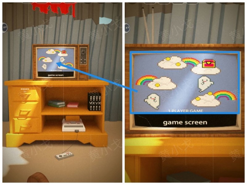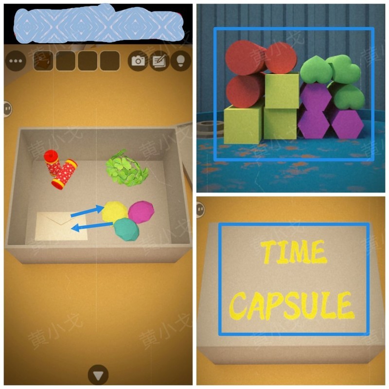 点击桌上的盒子,依照积木提示摆放物品,盖上盖子获取线索。