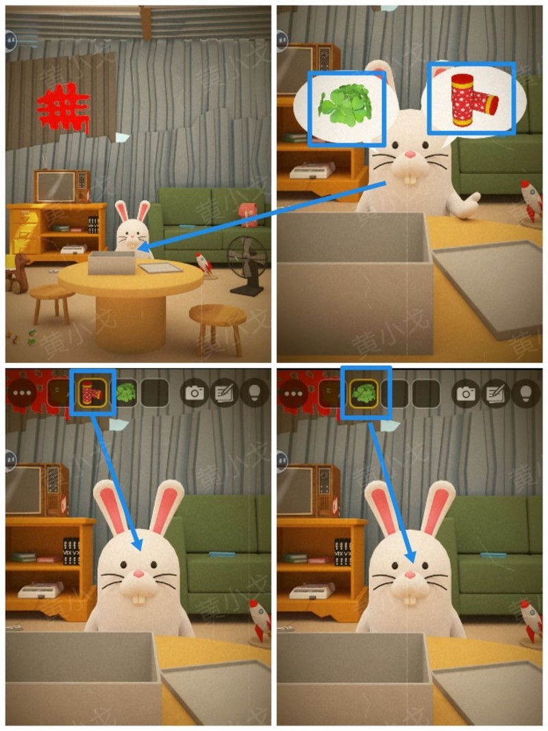 点击兔子,得知它需要爆竹和四叶草;将与交给它。