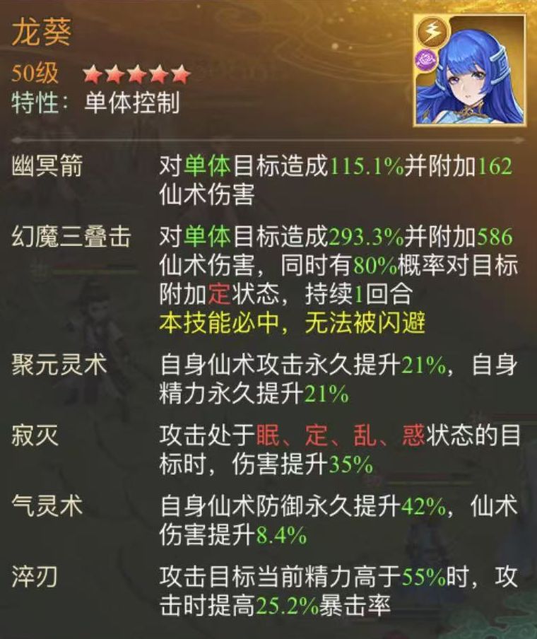9号位龙葵,单体高伤害并带定身效果,第三回合控制暮菖兰,助力玄霄释放绝技。