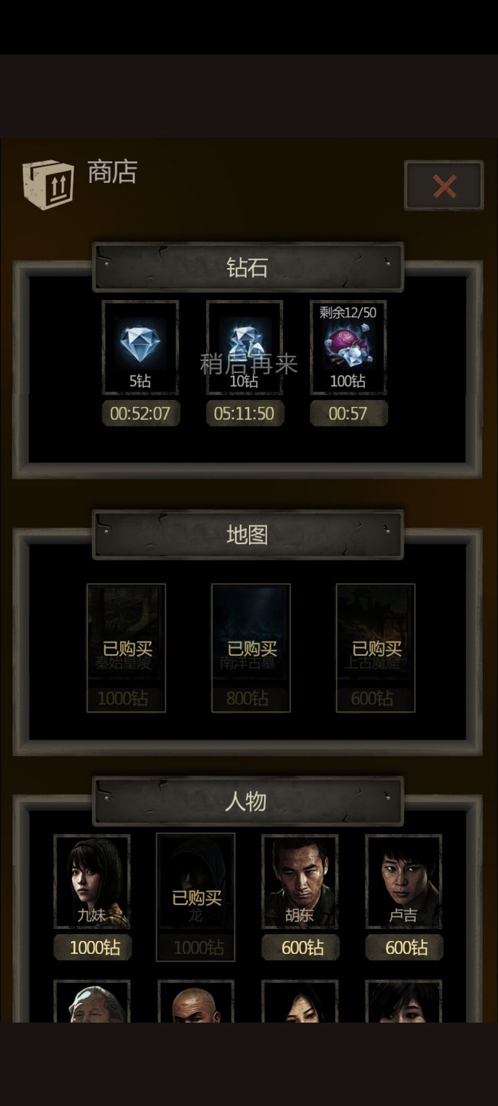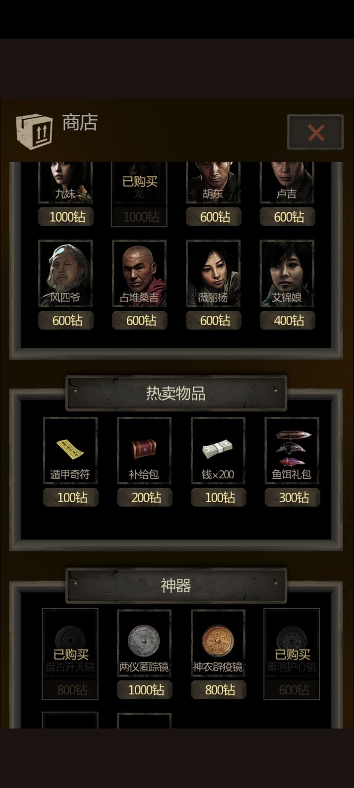 第三步边点钻石边购买鱼饵,前期买两三千钻就不会缺资源,商人来时可换火把、铁锹、铁制品和钱币。