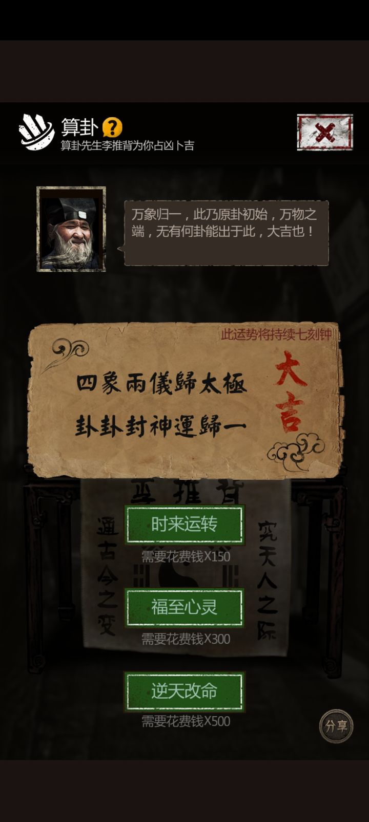 第一步先刷个大吉,别吝啬花钱,大吉效果持续两小时,在这套刷资源玩法中收益非常可观。