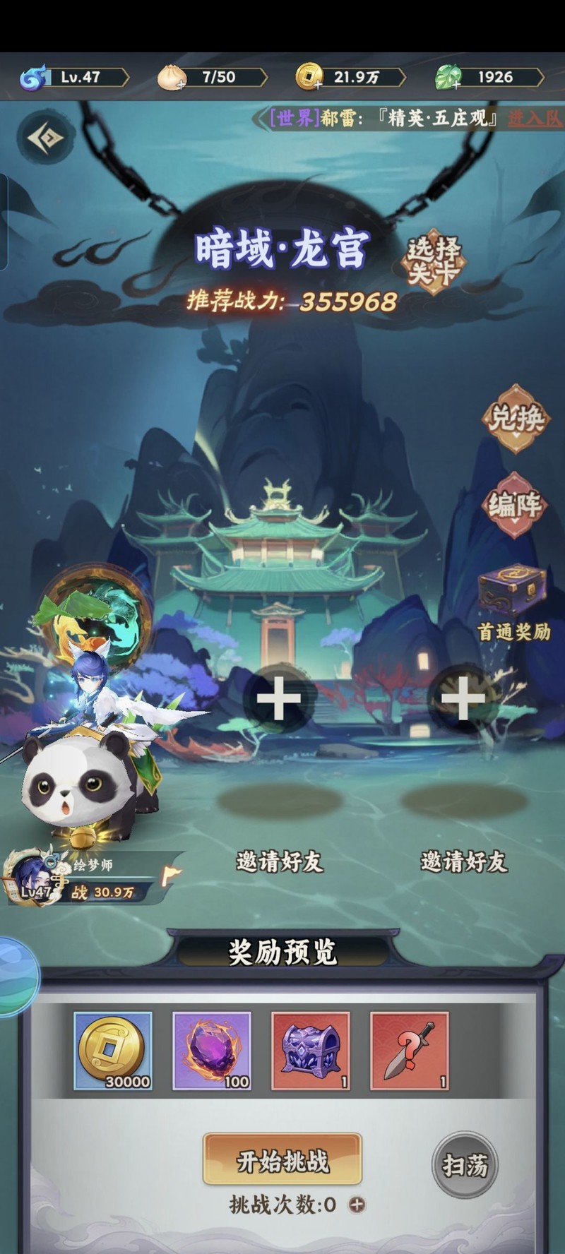 暗域侵袭已通过第一关(6所示),现在每天可扫荡一次,必掉5-6星随机金色或红色装备一件。对于零氪玩家来说,建议结识区内的大佬寻求帮助。我这边就是今晚有两位大佬一同带过去的。