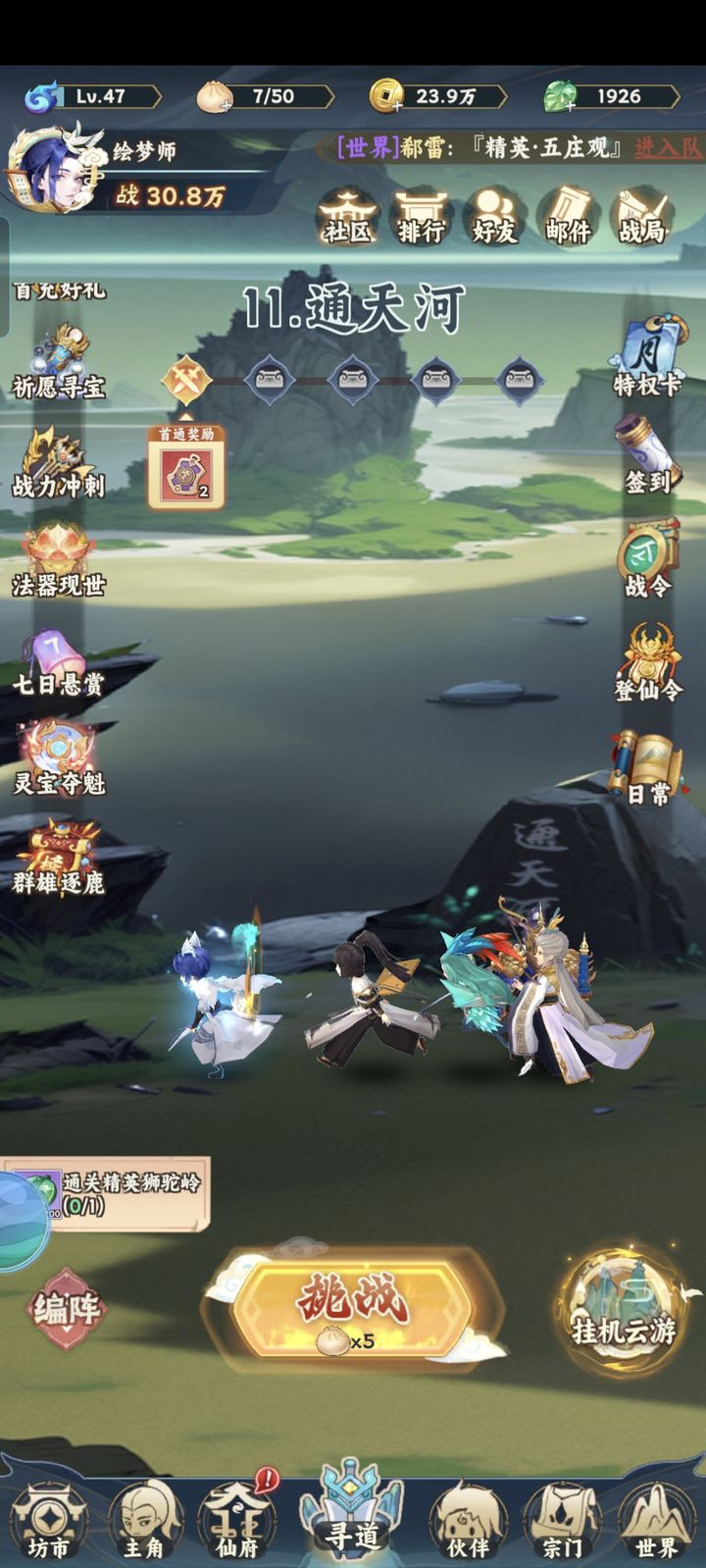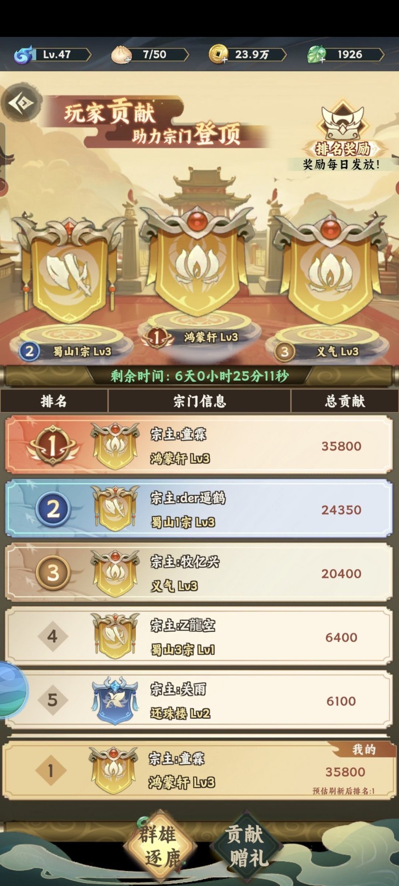 参与宗门贡献活动,每天完成宗门任务,坚持到第七天必能成功,还可获得庄周奖励,非常划算!建议加入区服第一宗门,提升效率。