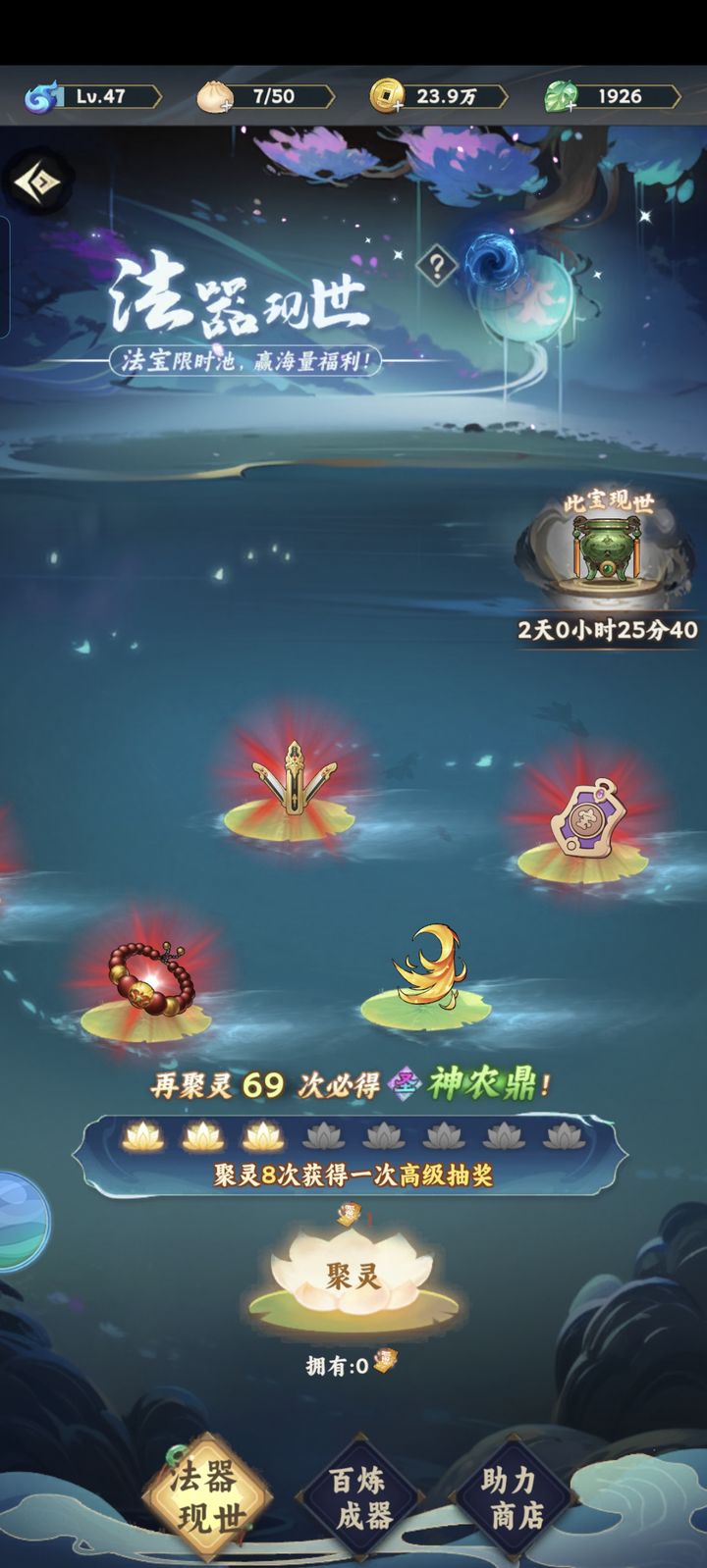 零氪不要抽,先屯聚灵符,参考图7,等后续攒够80抽再考虑神农鼎,下次活动时间不确定,但它不是限时道具。