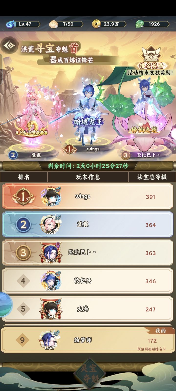 灵宝等级总榜来袭,建议均衡提升法宝!