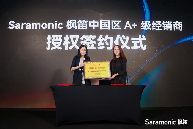 为加速技术成果在中国市场的落地,枫笛同步发布了聚焦专业音频领域的中国区业务战略规划,携手渠道伙伴,共同服务中国专业用户。战略发布后,Saramonic枫笛董事长助理、战略VP王芳女士、北京贰拾贰影像器材贸易有限公司总经理贾婷女士登台,进行了Saramonic枫笛中国区A+级经销商授权签约仪式!此举标志着Saramonic枫笛品牌在中国市场的本地化战略取得阶段性突破,渠道体系迈入实质运营阶段,在中国市场的市场推广、渠道建设、客户维护与售后支持等关键业务,为本地客户提供更高效、专业、可持续的服务体验。