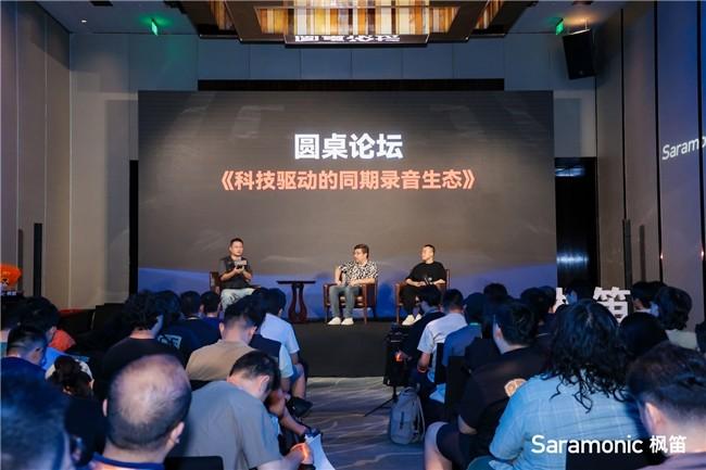 在主题为《科技驱动的同期录音生态》的圆桌论坛环节,邀请到三位行业专家,分别是国家一级录音师刘旭,代表作《流浪地球》《悬崖之上》:资深现场录音技术支持专家张诗野,服务项目《长津湖》《我和我的祖国》,以及Saramonic枫笛产品线负责人王春富。