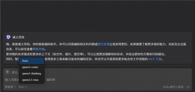 目前, Qwen3-Coder已经全面接入阿里云AI编程产品通义灵码,且免费不限量提供给开发者使用。通义灵码模型选择支持 Auto 模式,也可以选择 Qwen3-Coder 模型。后续也将持续增加更多新模型,为大家提供最优效果。