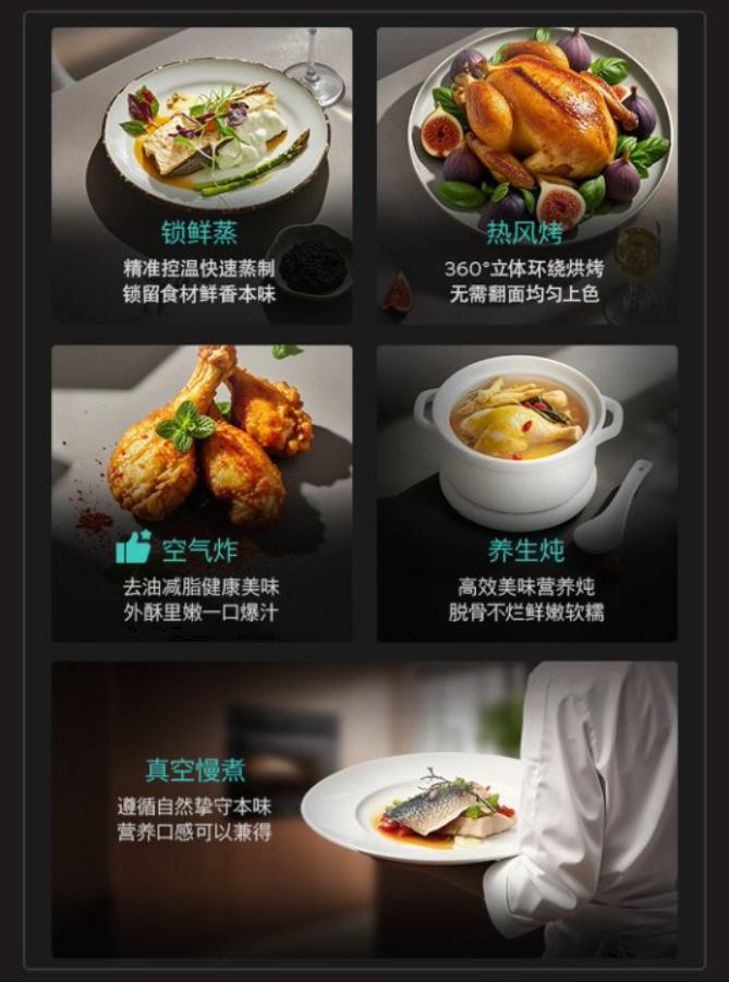炖与煮的功能也显现出超强的专业性:养生炖通过蒸汽智能适应系统实现热能持续渗透,适合红烧、卤味等多种传统菜式;而真空恒温慢煮技术则可将60–95°C温区控温精度提升至±2°C,为肉类和蛋白质类食材提供专业级烹调环境。