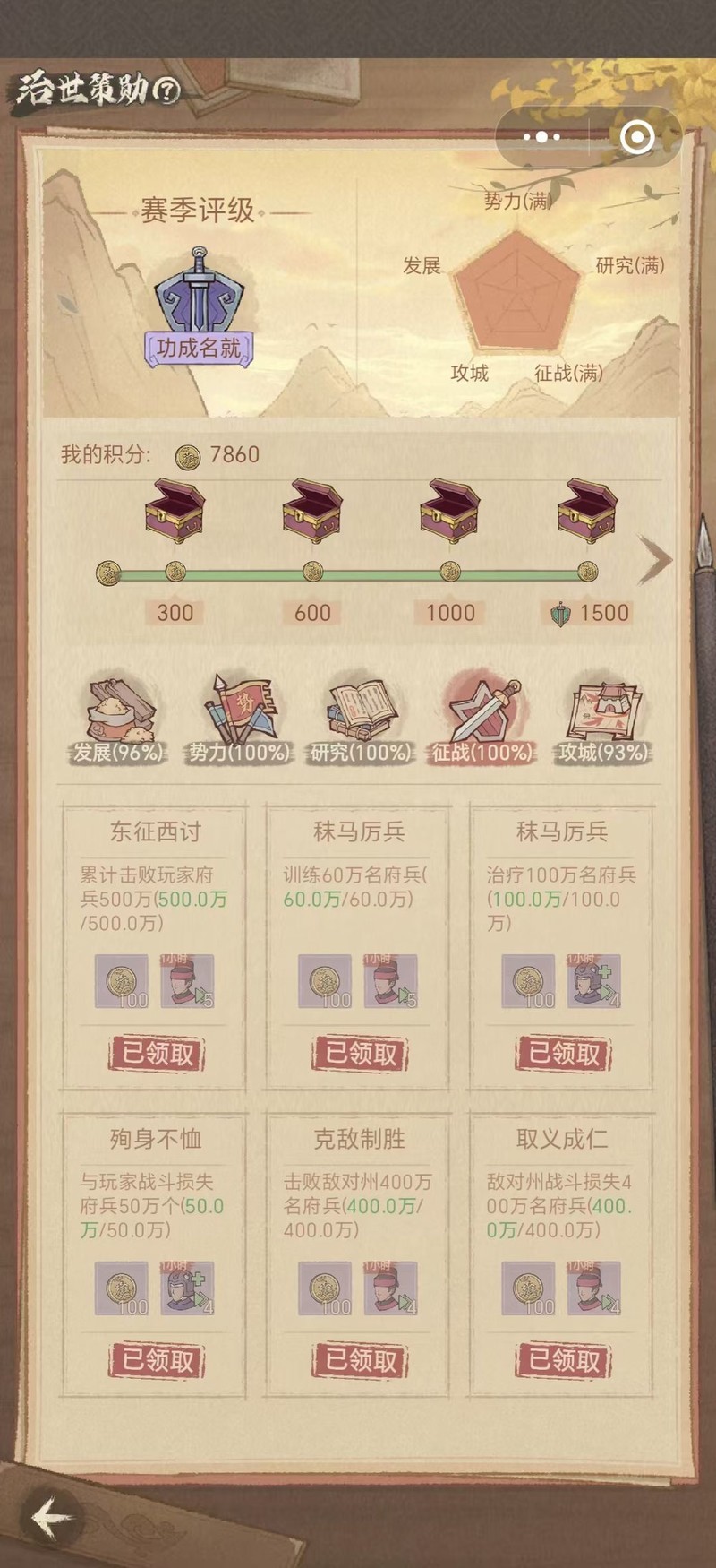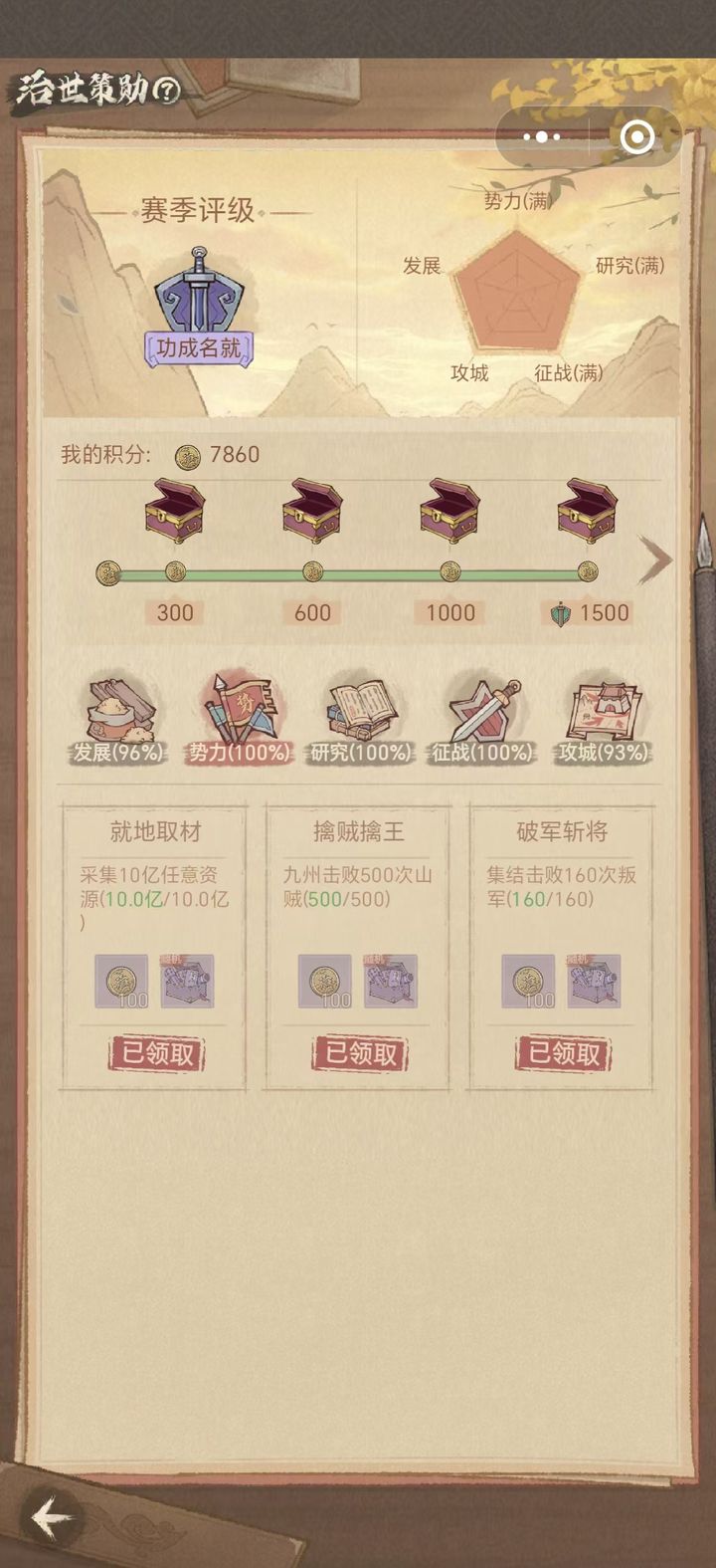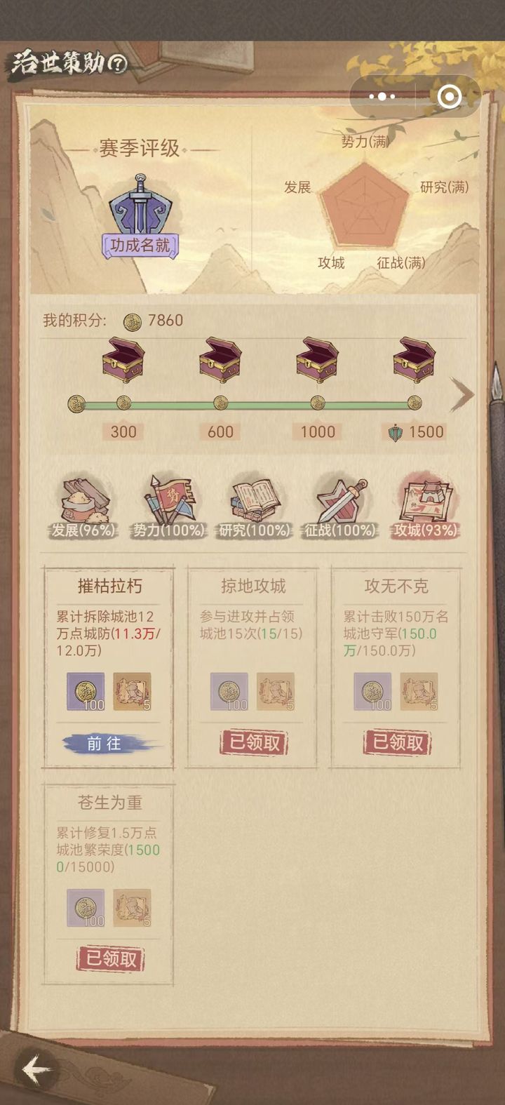 治世策勋是贯穿赛季的高难度任务,奖励丰富。我将根据其任务模块逐一为大家解析。
