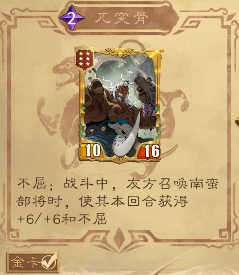 有些玩家认为蛮子阵容中必须加入突兀骨这张卡,因为其召唤出来的单位拥有不屈效果;也有观点认为贾诩会占用蛮子的位置,持这种看法的玩家往往会被嘲讽为菜鸡。其实,这两种说法都不够全面。首先,贾诩具备双倍遗计效果,而突兀骨的召唤物也带有不屈机制(相当于赋予召唤物二次生命),从数值上看两者相差不大。至于格子问题,突兀骨同样可能因召唤物残血不死而影响后续木鹿大王的部署。