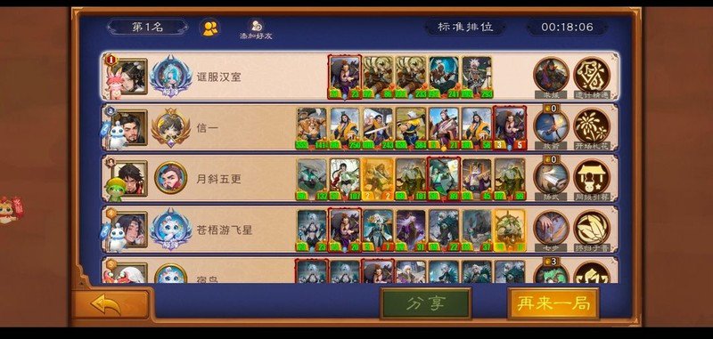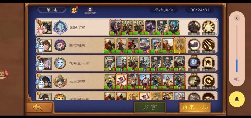 总结来说,蛮族后勤阵容在对抗物理外战时表现非常强势,堪称无敌;但在内战中则胜负较为模糊,主要依赖运气,五五开的局面较多。面对小黄巾队伍时具有一定劣势,而遇到大成黄巾更是难以应对。若使用贾诩、祝融与蛮子组合,则不仅在外战中有优势,在内战和对小黄巾时也有较强竞争力,但依旧忌惮完整形态的黄巾军。遗计蛮子在内战中有一定优势,但面对高血量阵容时效果不佳。玩蛮子需要耐心,这是一套上限极高的组合。曾经有玩家用何进打出木鹿,木鹿再爆蛇女加驯兽,驯兽甚至出了蛇。也曾有人靠遗计精通金木鹿连爆7个废将(没错,就是本人,哭哭)。一旦拿到孟获,就可以在心中默念:蛮王启动!祝大家都能顺利在4本前拿下洞主。