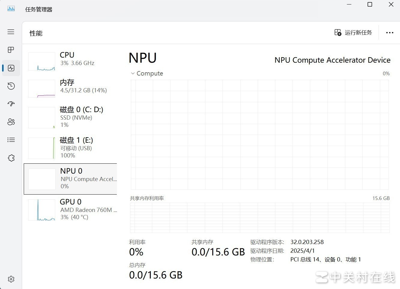 前面提到AMD 锐龙5 8600G平台的核心优势之一是其内置的专用AI引擎NPU(神经处理单元),并支持RyzenAI能力。目前Win11系统已经对AMD锐龙8000G系列的NPU进行了适配,在生产力、游戏、功耗、安全等领域全方面实现AI加速,覆盖50个以上的主流生产力软件与功能。而NPU是英特尔酷睿i5-14500平台上是不具备的。