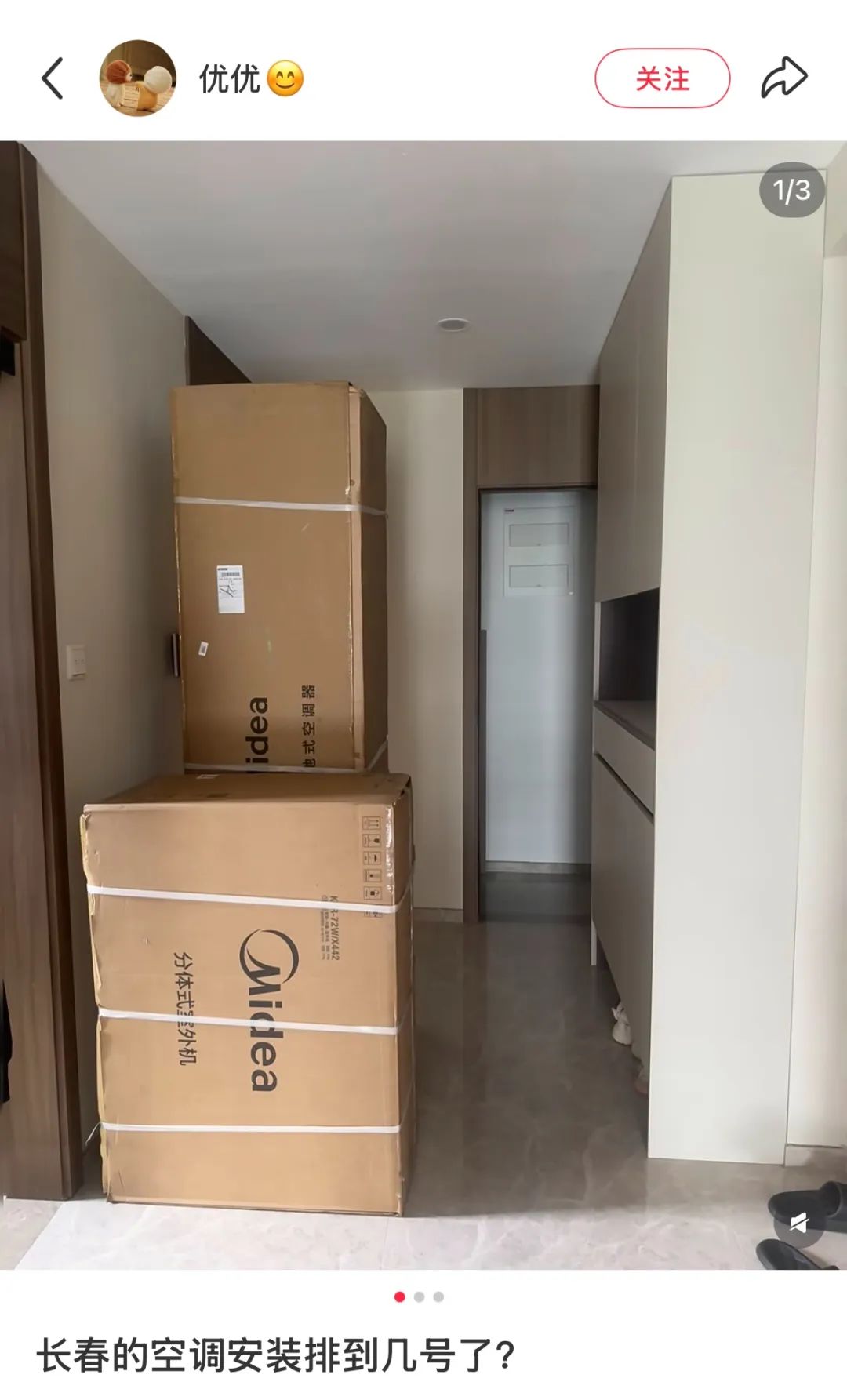 一位网友在小红书上发帖,急寻当天能安装空调的师傅,在几小时后表示自己联系到了一位安装师傅后,评论区有近20人都在求这位网友推荐。但师傅却表示自己不想接单了,“已经装不过来了”。