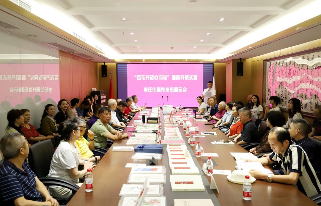 7月26日,由四川省文旅厅社会组织联合党委指导,四川四海画院、四川聚力兴蓉集团有限公司主办的“百花齐放心向党”画展开幕式暨李任仕著作发布展示会在成都举行。