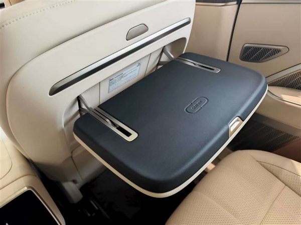 副驾二排前方也设置有一个小桌板,铝合金材质,触感极好且份量十足,在车内放个笔记本办公也没有太大问题。