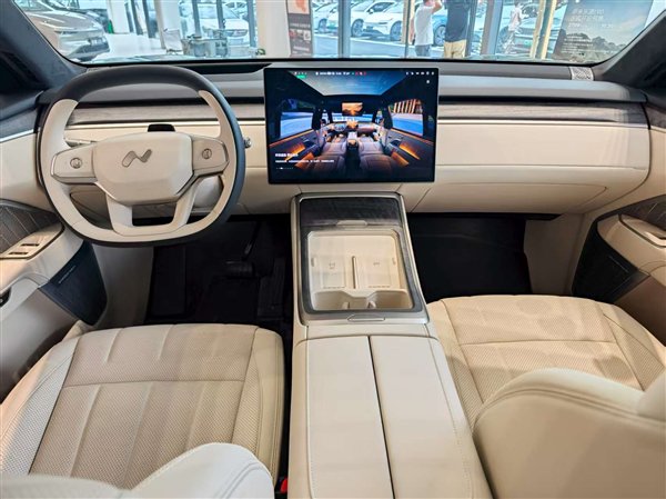 进入到车内,乐道L90的内饰看上去较为科技简约,平直的中控台线条搭配17.3英寸3K中控屏、三辐式多功能方向盘、35英寸AR-HUD,没有多余的设计,但基本上已把行车信息显示、娱乐功能集合完毕。