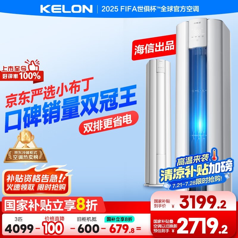 科龙3匹柜机空调 京东活动价3119元